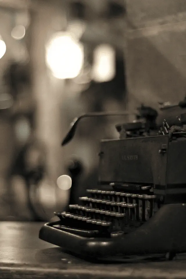 Macchina da scrivere d’epoca su un tavolo in legno, simbolo del gesto della scrittura.